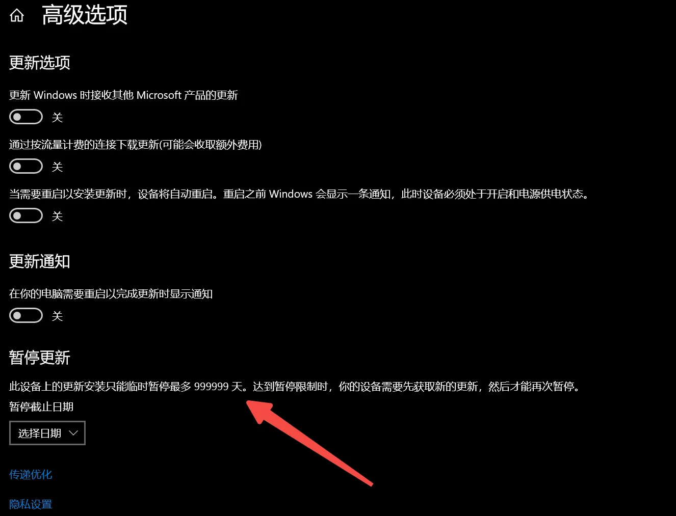 js展开代码reg add "HKLM\SOFTWARE\Microsoft\WindowsUpdate\UX\Settings" /v FlightSettingsMaxPauseDays /t REG_DWORD /d 3650 /f