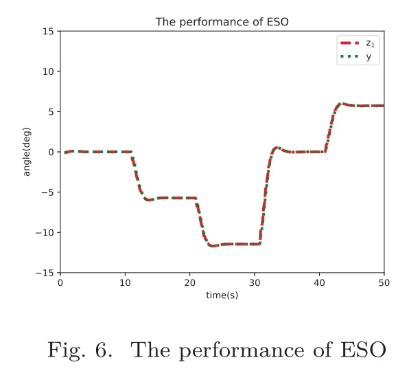 扩张状态观测器(ESO)的跟踪效果如图6所示,其中z1表示ESO输出,y为系统输出。结果表明ESO能够准确估计系统输出。